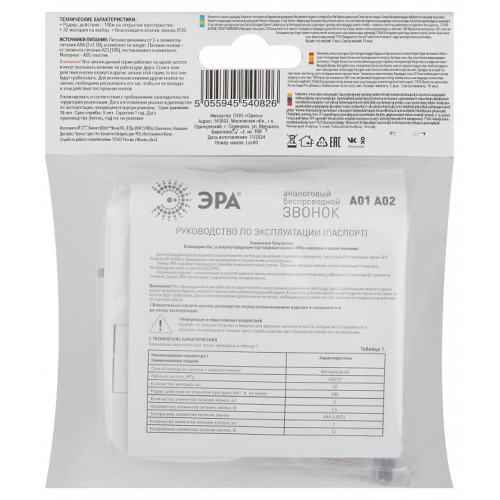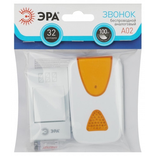 Цвет арматуры - белый, оранжевый. Запись типов - Сопутствующие товары,Звонки беспроводные. Компоненты, входящие в комплект - 1 батарейка А23, кнопка. Поверхность арматуры - матовый. Степень пылевлагозащиты, IP - 20. Диапазон рабочих температур - -45-[+40]. Основной цвет - разноцветная. Место размещения - Бра и настенные светильники. Гарантия, месяцы - 12. Дополнительные параметры - 32 мелодии. Размер упаковки, мм - 155x140x35. Масса брутто, кг - 0.11. Объем упаковки, куб. м - 0.000511833. Необходимые компоненты - 2 батарейки ААА. Свет - Да. Характеристики товара: Артикул товара: A02 Штрихкод: