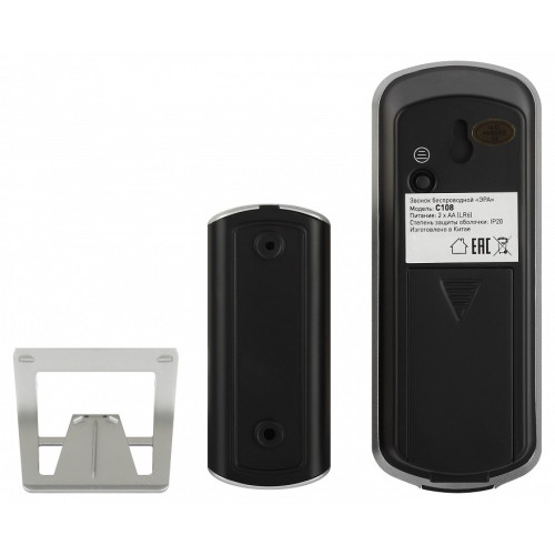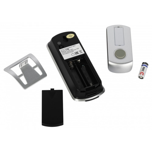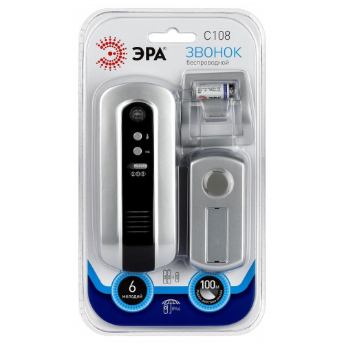 Цвет арматуры - серебро, черный. Запись типов - Сопутствующие товары,Звонки беспроводные. Компоненты, входящие в комплект - 1 батарейка А23, кнопка. Поверхность арматуры - матовый. Степень пылевлагозащиты, IP - 20. Диапазон рабочих температур - -45-[+40]. Основной цвет - разноцветная. Место размещения - Бра и настенные светильники. Гарантия, месяцы - 12. Дополнительные параметры - 6 мелодий. Размер упаковки, мм - 235x135x40. Масса брутто, кг - 0.18. Объем упаковки, куб. м - 0.00135. Необходимые компоненты - 2 батарейки АА. Свет - Да. Характеристики товара: Артикул товара: C108 Штрихкод: