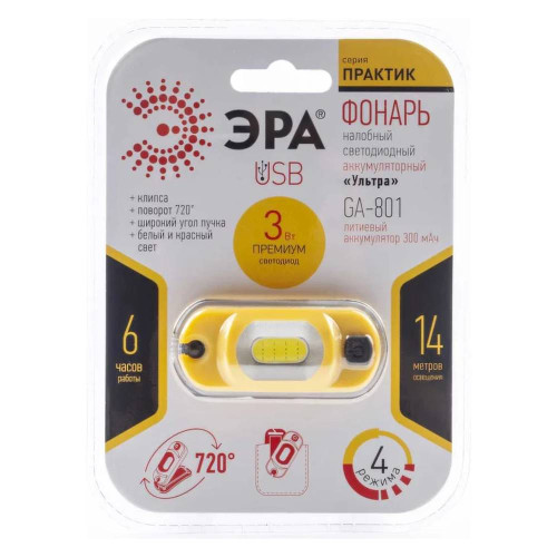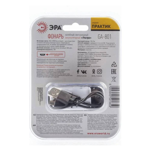 Фонарь светодиодный налобный ЭРА GA-801 Практик аккумуляторный NEW