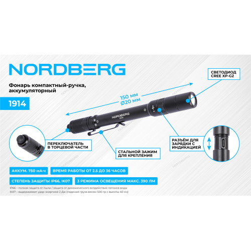 Фонарь светодиодный, компактный - ручка, аккумуляторный NORDBERG 1914