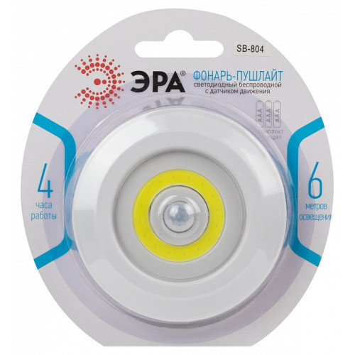 Тип лампы - светодиодная [LED]. Цвет арматуры - белый. Материал арматуры - полимер. Площадь освещения, м2 - 1.5. Световой поток, Лм - 110. Количество плафонов - 1. Направление плафонов - вперед. Максимальная мощность лампы, Вт - 3. Запись типов - Специальные светильники,Поворотные светильники,Подсветки,Ночники,Фонари универсальные. Компоненты, входящие в комплект - нет. Общее кол-во ламп - 1. Лампы в комплекте - отсутствуют. Цвет плафонов и подвесок - белый. Поверхность плафонов и подвесок - матовый. Поверхность арматуры - матовый. Материал плафонов и подвесок - полимер. Степень пылевлагозащиты, IP - 20. Форма плафонов - круг плоский. Диапазон рабочих температур - +1-[+35]. Основной цвет - разноцветная. Помещение - Гостиная,Кабинет,Коридор,Прихожая,Спальня. Гарантия, месяцы - 12. Сопоставление с лампой накаливания - в 6 раз больше. Тип лампы основной - светодиодная [LED]. Основное помещение - Гостиная. Штрих-код - 5055398615300. Светоотдача, лм/Вт - 37. Дополнительные параметры - дальность луча - 6 м.. Размер упаковки, мм - 145x135x30. Масса брутто, кг - 0.058. Объем упаковки, куб. м - 0.00071074. Наличие выключателя, диммера или пульта ДУ - датчик движения. Мощность, приведенная к лампе накаливания, Вт - 18. Необходимые компоненты - 3 батарейки ААА. Свет - Да. Характеристики товара: Артикул товара: SB-804 Штрихкод: 5055398615300