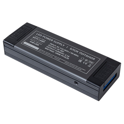 Цвет арматуры - серый. Материал арматуры - алюминий. Серия - Arte Lamp. Запись типов - Комплектующие для светильников,Блоки питания. Длина, мм - 165. Ширина, мм - 58. Высота, мм - 29. Размеры, мм - 165x58x29. Поверхность арматуры - матовый. Напряжение питания, В - 220. Степень пылевлагозащиты, IP - 20. Диапазон рабочих температур - +1-[+35]. Основной цвет - разноцветная. Гарантия, месяцы - 12. Штрих-код - 4660291809520. Размер упаковки, мм - 67x173x37. Масса брутто, кг - 0.383. Высота (мин), мм - 29. Максимальная мощность нагрузки, Вт - 100. Напряжение на нагрузке, В - 48. Характеристики товара: Артикул товара: A481205N Штрихкод: 4660291809520
