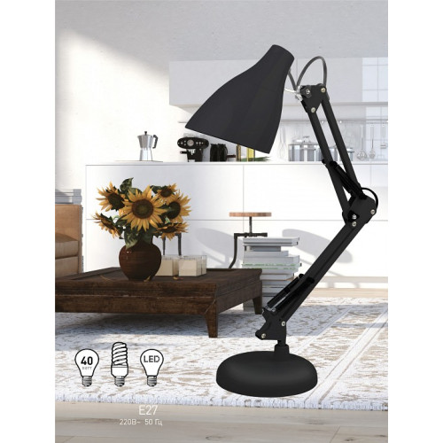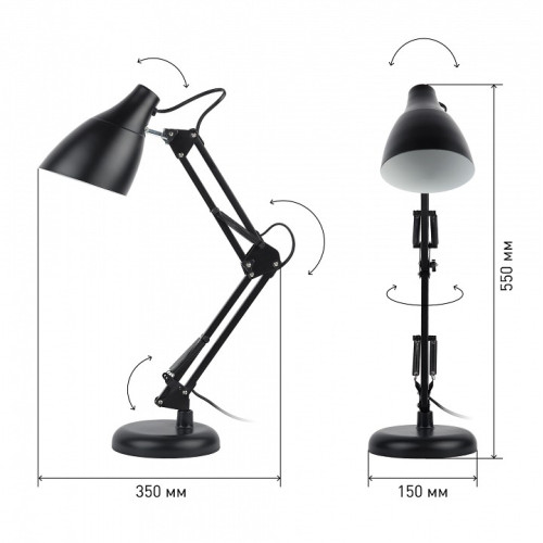 Стиль - техно. Тип лампы - накаливания ИЛИ светодиодная [LED]. Цвет арматуры - черный. Материал арматуры - металл. Количество плафонов - 1. Направление плафонов - любое. Максимальная мощность лампы, Вт - 40. Серия - N123. Запись типов - Технические светильники,Поворотные светильники,Настольные лампы офисные. Ширина, мм - 150. Высота, мм - 550. Размеры, мм - 350x150x550. Компоненты, входящие в комплект - провод электропитания с вилкой без заземления. Общее кол-во ламп - 1. Лампы в комплекте - отсутствуют. Цвет плафонов и подвесок - черный. Поверхность плафонов и подвесок - глянцевый. Поверхность арматуры - глянцевый. Материал плафонов и подвесок - металл. Класс электробезопасности - II. Степень пылевлагозащиты, IP - 20. Напряжение питания лампы, В - 220. Форма плафонов - колокол расходящийся. Диапазон рабочих температур - +1-[+35]. Основной цвет - разноцветная. Место размещения - Настольные лампы. Помещение - Кабинет,Офис. Гарантия, месяцы - 24. Тип лампы основной - накаливания. Основное помещение - Офис. Штрих-код - 5056306085550. Выступ, мм - 350. Дополнительные параметры - поворотный светильник. Размер упаковки, мм - 160x155x295. Тип цоколя лампы - E27. Объем упаковки, куб. м - 0.007316. Способ крепления к поверхности - без крепления. Тип цоколя лампы основной - E27. Наличие выключателя, диммера или пульта ДУ - выключатель на проводе. Дополнительная запись типов - Типы/Настольные Лампы/Офисные. Характеристики товара: Артикул товара: Б0047197 Штрихкод: 5056306085550