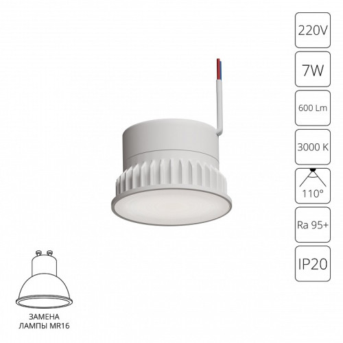 Тип лампы - светодиодная [LED]. Цветовая температура, K - 3000. Световой поток, Лм - 600. Максимальная мощность лампы, Вт - 7. Серия - ORE. Запись типов - Комплектующие для светильников,Модули светодиодные. Высота, мм - 32. Размеры, мм - 50x32. Возможность подключения диммера - нельзя. Степень пылев... →