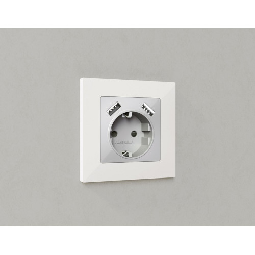 Накладка для розетки с заземлением и со шторками и 2хUSB type A Ambrella Volt Quant AP4090