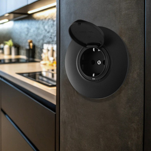 Розетка с заземлением и шторкой, с крышкой Arte Milano SET08-1 SET08-1-41-1 black