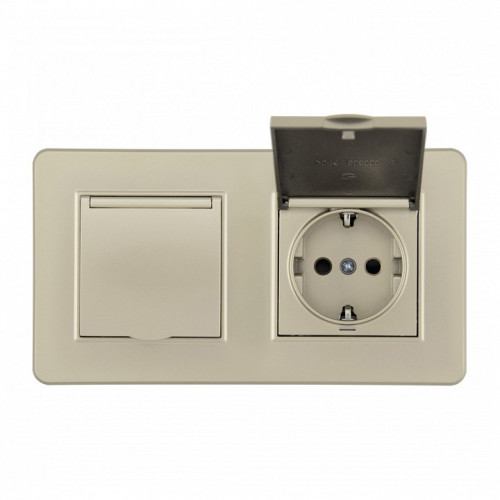 Розетка с заземлением и шторкой, с крышкой Arte Milano SET16-2 SET16-2-41-1x2 shampan