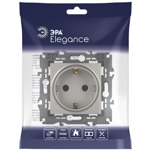 Розетка с заземлением и со шторкой, без рамки Эра Эра Elegance 14-2102-16