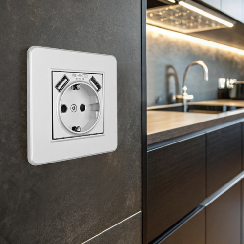 Запись типов | Сопутствующие товары,Розетки с заземлением и со шторками и 2хUSB |