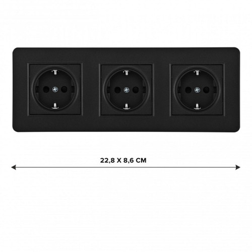 Стиль - модерн. Цвет арматуры - черный. Материал арматуры - металл, поликарбонат. Серия - SET16-3. Запись типов - Сопутствующие товары,Розетки с заземлением и со шторками. Длина, мм - 220. Ширина, мм - 80. Высота, мм - 30. Размеры, мм - 220x80x30. Компоненты, входящие в комплект - 3 розетки, рамка н... →