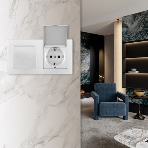 Розетка влагозащищенная с заземлением и со шторкой с крышкой Arte Milano SET06-2 SET06-2-41-1x2 silver