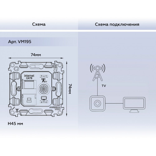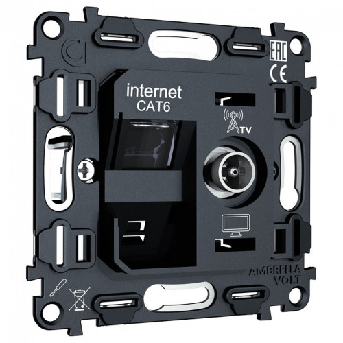 Механизм ТВ-розетки оконечные и розетки Ethernet RJ-45 со шторкам Ambrella Volt QUANT VM195