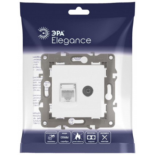 ТВ-розетка и розетка Ethernet RJ-45 без рамки Эра Эра Elegance 14-3110-01М