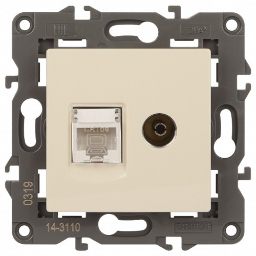 ТВ-розетка и розетка Ethernet RJ-45 без рамки Эра Эра Elegance 14-3110-02