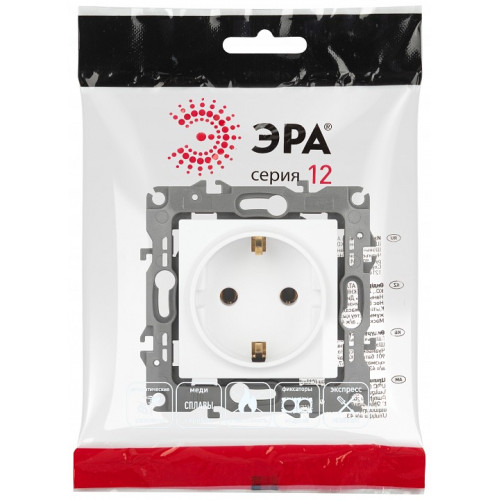 Розетка с заземлением и со шторкой, без рамки Эра Эра 12 12-2101-01М