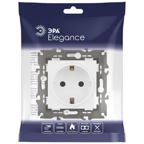 Розетка с заземлением и со шторкой, без рамки Эра Эра Elegance 14-2102-01