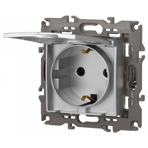 Розетка с заземлением и со шторкой, без рамки с крышкой Эра Эра Elegance 14-2103-03