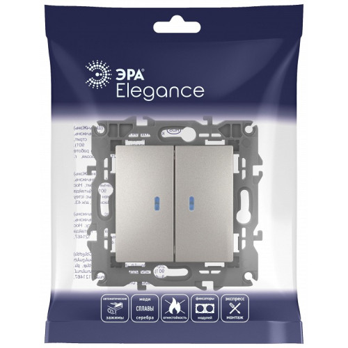 Выключатель двухклавишный с подсветкой без рамки Эра Эра Elegance 14-1105-16