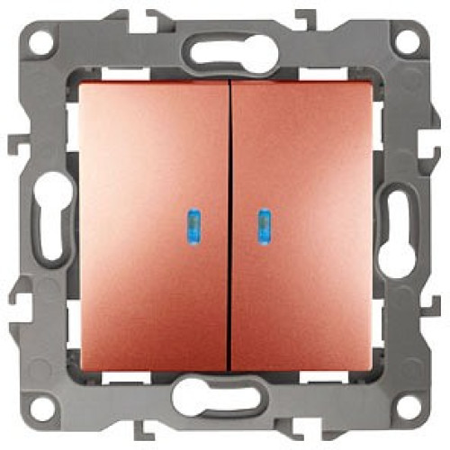 Выключатель двухклавишный с подсветкой без рамки Эра Эра 12 12-1105-14