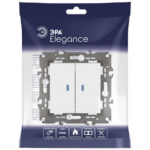 Выключатель двухклавишный с подсветкой без рамки Эра Эра Elegance 14-1105-01М