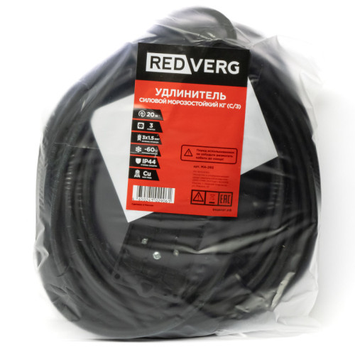 Удлинитель REDVERG силовой морозостойкий КГ 3х1,5, колодка 3 розетки, IP44, 20м (с/з)