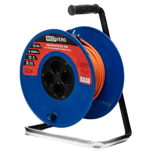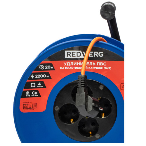 Удлинитель REDVERG ПВС на пластиковой катушке, 4 розетки, 2200Вт 20м (б/з)