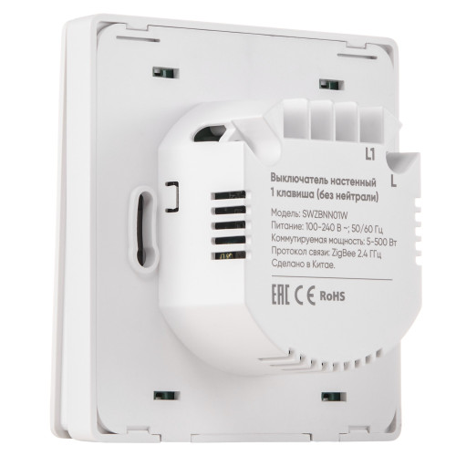 Комплектация: выключатель одноклавишный, винты,руководство пользователя – 2 шт.Умный выключатель – это надежное устройство, предназначенное длясоздания умного домашнего освещения. Выключатель выполнен в стильном,безрамочном, минималистичном дизайне, с приятным тактильным нажатиемклавиши со светодиодным индикатором. Умный выключатель предназначен длявключения и выключения освещения (лампы, светильники, люстры, LED лентыи пр.) вручную с помощью клавиши, удаленно при помощи приложения насмартфоне или с помощью голосового помощника. Выключатель HOMMYNсовместим с большинством типов ламп (накаливания, галогенные,светодиодные, филаментные). Компактный размер позволяет провести монтажв стандартный круглый подрозетник. Для подключения требуется толькопитающая линия L (фаза), а нулевая линия N (нейтраль) не требуется.Выключатель поддерживает передачу данных по беспроводному протоколуZigbee 3.0. Работает с приложениями умного дома:Hommyn, Tuya Smart life, Home Assistant, Дом сАлисой, Салют умный дом. Для подключения кприложению требуется zigbee хаб. Для подключения к приложению Hommynтребуется оригинальный zigbee хаб HOMMYN Hub HH-01. Выключатель Hommynподдерживает управление с помощью голосовых помощников Алиса,Маруся, Салют. Выбирая выключатель Hommyn, вы получаетекачественное и надежное устройство, которое повысит уровень комфортавашего жилища.Основные функциивключает и выключает освещение по клавише, через приложение или спомощью голосовых помощников Алиса, Маруся,Салют;поддерживает автоматическое управление по расписанию черезприложение;настройка памяти состояния питания после аварийного отключенияэлектричества;для подключения к электроцепи не требуется нулевая линия N(нейтраль), необходима только питающая линия L (фаза);выключатель с 1 клавишей управляет 1 группой нагрузки (например,1 лампочка);поддерживает сценарии автоматизации с другими датчиками иприборами в приложениях Tuya Smart life, HomeAssistant, Дом с Алисой и Салют умныйдом.Установка и настройкаКомпактные размеры позволяют провести монтаж в стандартную круглуюмонтажную коробку в стене. Монтаж и подключение производится всоответствии с руководством пользователя, прилагаемым к продукту.Нулевая линия N не требуется.Основные технические характеристики:Модель: 2SWZBNN01WБеспроводной протокол zigbee 3.0 (IEEE 802.15.4), частота 2.4ГГцНапряжение питания: 100 - 240 В ~; 50/60 ГцКоммутируемая мощность: до 500 Вт (резистивная нагрузка)Ограничения по минимальной нагрузке: 5 Вт.Дальность действия сигнала zigbee: до 100 м (в открытомпространстве).Диапазон рабочих температур и влажности: 0°С - +40°С,≤80%Размеры (ДхШхВ): 86х86х40 ммВес нетто: 100 гЦвет: белый Артикул товара: НС-1759514. Характеристики товара: Высота товара - 8.6. Область применения - Бытовое оборудование (для домашнего использования). Класс пылевлагозащищенности - IP20. Макс. потребляемая мощность, Вт - 500. Управление c мобильного приложения по Wi-Fi - Да. Работа по расписанию - Да. Высота упаковки товара - 11.7. Глубина упаковки товара - 10.4. Ширина упаковки товара - 9.1. Страна производства - КНР. Цвет корпуса - Белый. Бренд - HOMMYN. Материал корпуса - ABS-пластик. Срок службы - 3 года. Питание - 100 - 240 В ~; 50/60 Гц. Комплектность - выключатель одноклавишный, винты, руководство пользователя – 2 шт. Работает с HOMMYN - Да. Работает с Алисой - Да. Работает с Марусей - Да. Wi-Fi модуль - Нет. Работает с Салют - Да. Он-лайн контроль текущего