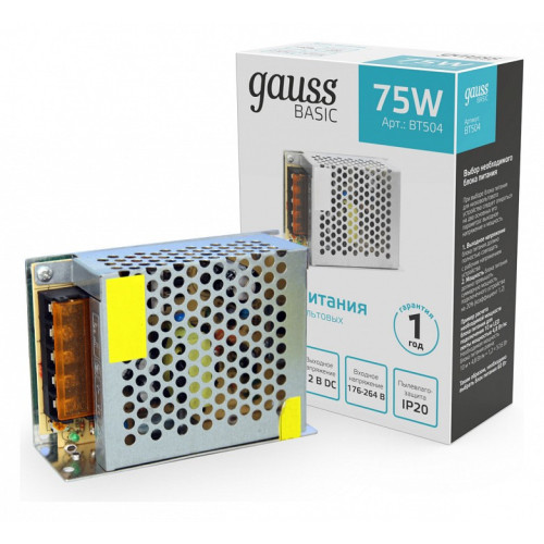 Материал арматуры - металл. Запись типов - Комплектующие для светильников,Блоки питания. Длина, мм - 110. Ширина, мм - 78. Высота, мм - 35. Размеры, мм - 110x78x35. Класс электробезопасности - I. Напряжение питания, В - 100-264. Степень пылевлагозащиты, IP - 20. Диапазон рабочих температур - -25-[+50]. Основной цвет - разноцветная. Гарантия, месяцы - 12. Штрих-код - 4610122564081. Размер упаковки, мм - 114x80x40. Масса брутто, кг - 0.213. Объем упаковки, куб. м - 0.00037. Максимальная мощность нагрузки, Вт - 75. Номинальный ток, A - 6.25. Напряжение на нагрузке, В - 12. Дополнительная запись типов - Типы/Светодиодная подсветка/Блоки питания. Характеристики товара: Артикул товара: BT504 Штрихкод: 4610122564081