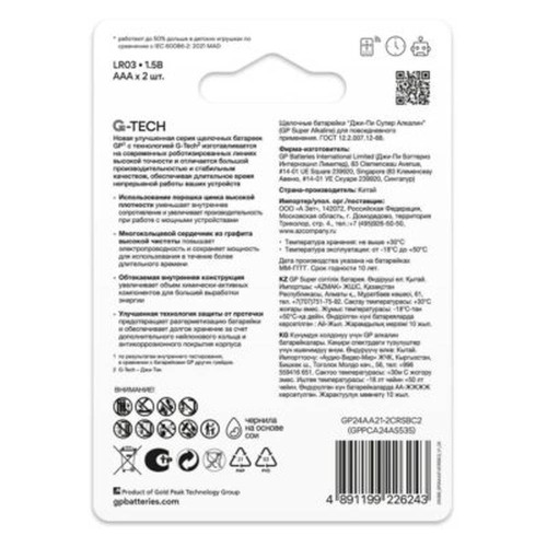 Артикул товара: 2735141 Штрихкод: 4891199226243 Характеристики товара: Количество в упаковке, шт - 2. Типоразмер батареек - AAA. Габариты упаковки, мм - 100х10х60..