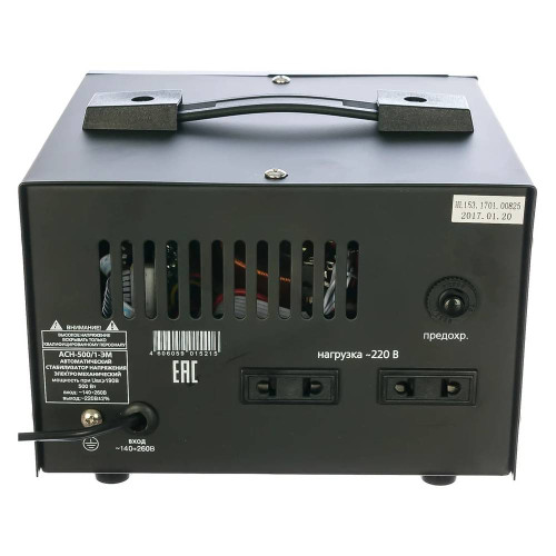 Артикул товара: 63/1/1 Штрихкод: 4606059015215 Характеристики товара: Тип стабилизатора - Электромеханический. Тип охлаждения - Воздушное. Тип - Сетевой. Способ установки - Напольный. Погрешность, % - 2. Мощность, Вт - 500.0000. Мин. входное напряжение, В - 140.0000. Макс. входное напряжение, В - 26... →
