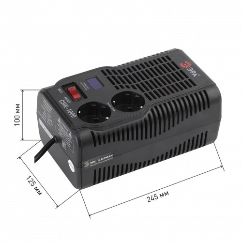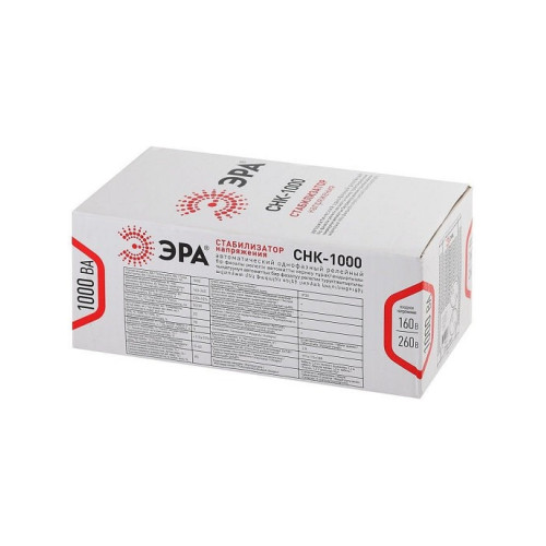 Цвет арматуры - черный. Материал арматуры - поликарбонат. Запись типов - Комплектующие для светильников,Провода электрические,Розетки,Стабилизаторы напряжения. Длина, мм - 245. Ширина, мм - 125. Высота, мм - 100. Размеры, мм - 245x125x100. Поверхность арматуры - матовый. Напряжение питания, В - 160-260. Степень пылевлагозащиты, IP - 20. Диапазон рабочих температур - +5-[+40]. Основной цвет - разноцветная. Гарантия, месяцы - 12. Размер упаковки, мм - 245x130x105. Масса брутто, кг - 2.4. Объем упаковки, куб. м - 0.00334425. Наличие выключателя, диммера или пульта ДУ - выключатель. Максимальная мощность нагрузки, Вт - 1000 ВА. Напряжение на нагрузке, В - 220. Свет - Да. Характеристики товара: Артикул товара: СНК-1000 Штрихкод: