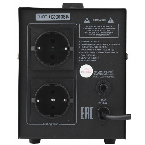 Цвет арматуры - черный. Материал арматуры - поликарбонат. Запись типов - Комплектующие для светильников,Провода электрические,Розетки,Стабилизаторы напряжения. Длина, мм - 285. Ширина, мм - 135. Высота, мм - 170. Размеры, мм - 285x135x170. Поверхность арматуры - матовый. Напряжение питания, В - 140-260. Степень пылевлагозащиты, IP - 20. Диапазон рабочих температур - +5-[+40]. Основной цвет - разноцветная. Гарантия, месяцы - 12. Размер упаковки, мм - 285x135x180. Масса брутто, кг - 2.86. Объем упаковки, куб. м - 0.0069255. Наличие выключателя, диммера или пульта ДУ - выключатель. Максимальная мощность нагрузки, Вт - 1000 ВА. Напряжение на нагрузке, В - 220. Свет - Да. Характеристики товара: Артикул товара: СНПТ-1000-Ц Штрихкод: