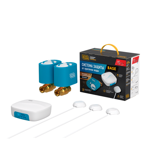 Базовая проводная система защиты от протечек воды, которая предназначена для защиты от затопления помещения водой в случае возникновения аварии в системах водоснабжения и отопления. В состав системы входит: - модуль управления Stahlmann Base —1 шт - датчик протечки воды Stahlmann 001 — 3 шт - кран шаровой с электроприводом Stahlmann 3/4F 12В — 2 шт Применение: Для использования в жилом, коммерческом и промышленном секторах, в системах диспетчеризации и умных домах. Преимущества: Контроль обрыва датчиков Автоматический проворот кранов Контроль закрытия кранов Сухой контакт — интеграция в систему умный дом Максимальное количество датчиков — до 50 шт Характеристики товара: Страна производства - Россия. Артикул - 2287302..