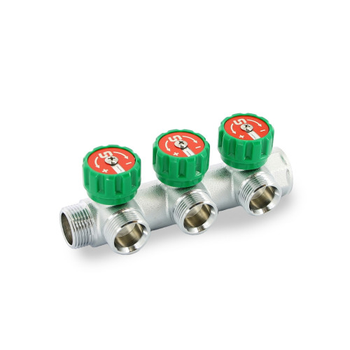 Коллектор НВ 3/4 х 3 вых 3/4 ЕК, с выходами под 90°, 45 мм, с вентилями, хром