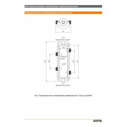 Гидроразделитель нерж. универсальный, 1 контур, до 60 кВт