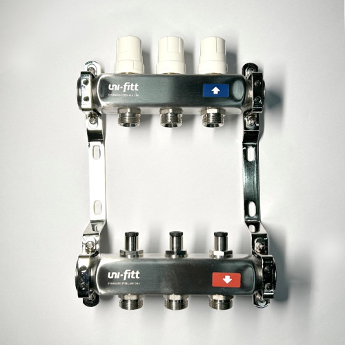 Колл.группа 1 х 3 вых 3/4 с балансировочными и термостатическими вентилями без конц, нерж. cталь