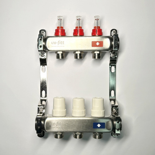 Колл.группа 1 х 3 вых 3/4 с расходомерами и термостатическими вентилями без конц, нерж. сталь