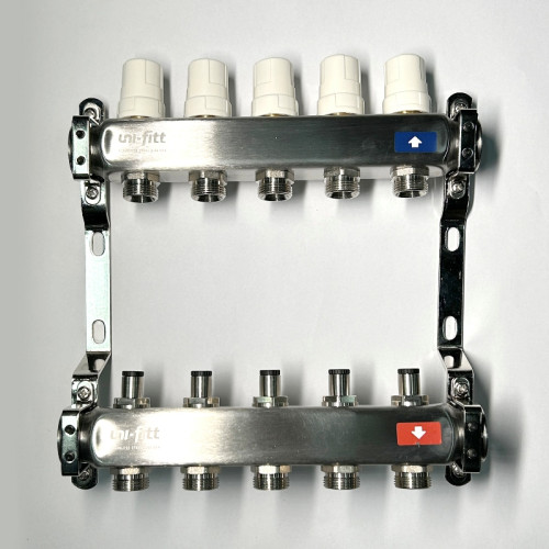 Колл.группа 1 х 5 вых 3/4 с балансировочными и термостатическими вентилями без конц, нерж. cталь