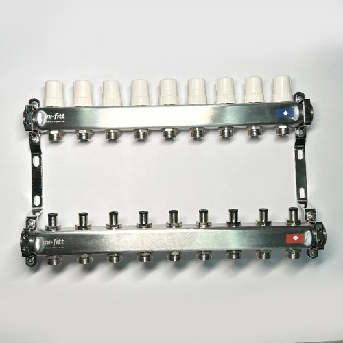 Колл.группа 1 х 9 вых 3/4 с балансировочными и термостатическими вентилями без конц, нерж. cталь