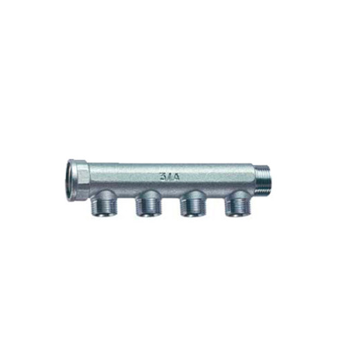 Хромированный модульный коллектор с 2,3,4 отводами. Вход: 3/4” НР-ВР Отводы: 1/2" НР Вход: 1”-1”1/4 НР-ВР Отводы: 1/2"-3/4" ВР Расстояние между центрами отводов: 50мм. Для подсоединения с плоской прокладкой Характеристики товара: Страна производства - Италия. Артикул - FK 3725 134. Размеры - 1х3/4, 4 отвода..