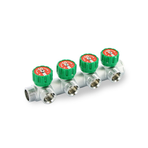 Коллектор НВ 3/4 х 4 вых 3/4 ЕК, с выходами под 90°, 45 мм, с вентилями, хром