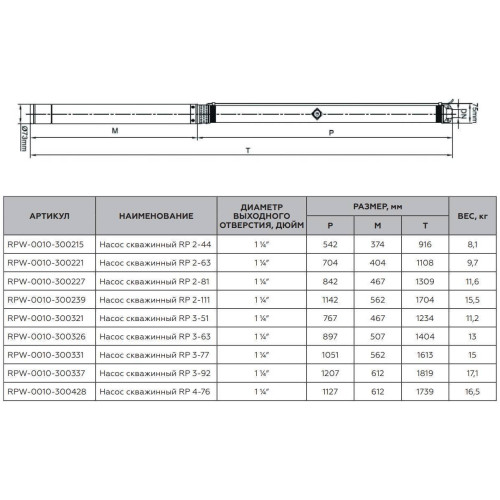 Погружной скважинный насос ROMMER – это насос центробежного типа,многоступенчатый c плавающими колесами предназначен для подачи воды из скважин внутренним диаметром 80 мм и более, а также из шахтных колодцев, резервуаров и открытых водоемов для полива садов, и огородов. Характеристики товара: Макс. мощность, кВт - 0,55. Длина кабеля, м - 1.5. Насос - Да. Класс защиты - IP68. Бренд - ROMMER. Электропитание, В - 220-240. Код товара - 00005842. Макс. рабочая температура, °С - 35. Стандарт подключения, дюйм - 1 1/4. Мин. рабочая температура, (С) - 1. Масса нетто, кг - 9,7..