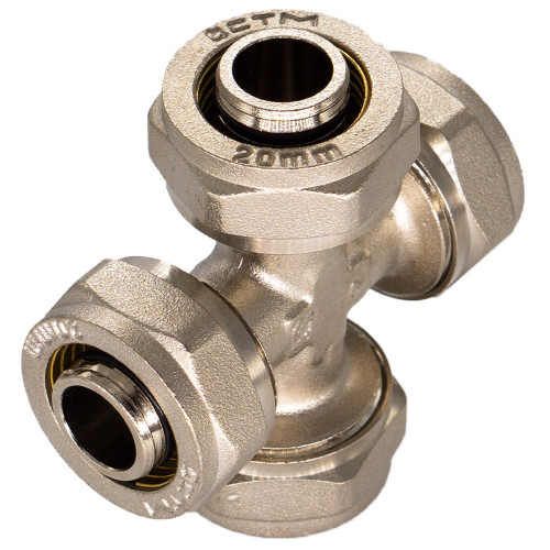 Крестовина 20х20х20х20 CTM равнопроходной обжимной фитинг для соединения металлопластиковых (металлополимерных) труб. Использование равнопроходной крестовины снижает давление потока в узле соединения при подключении дополнительных потребителей. Изготовлена методом горячей штамповки из латуни с после... →