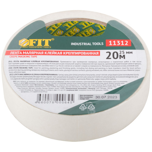 Лента малярная креппированная клейкая 25 мм х 20 м