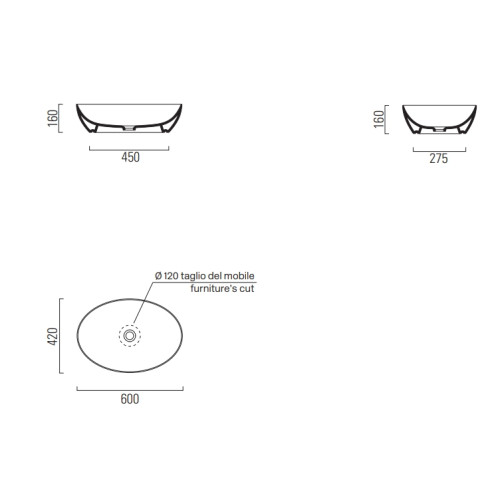 884211 PURA Раковина 60х42, накладная, цвет белый 884211