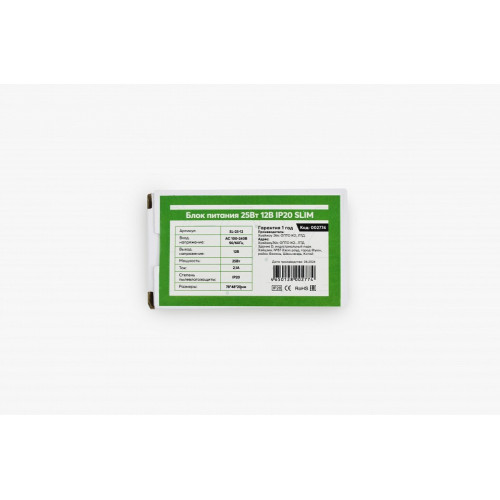 Цвет арматуры - серый. Материал арматуры - алюминий. Запись типов - Комплектующие для светильников,Комплектующие для лент светодиодных,Блоки питания. Длина, мм - 78. Ширина, мм - 48. Высота, мм - 20. Размеры, мм - 78x48x20. Поверхность арматуры - матовый. Напряжение питания, В - 100-240. Степень пылевлагозащиты, IP - 20. Диапазон рабочих температур - -20-[+60]. Основной цвет - разноцветная. Гарантия, месяцы - 12. Максимальная мощность нагрузки, Вт - 25. Номинальный ток, A - 2. Напряжение на нагрузке, В - 12. Характеристики товара: Артикул товара: 002774 Штрихкод: