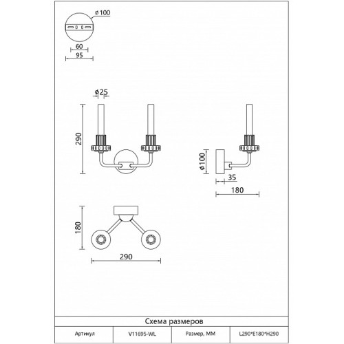 Стиль - модерн. Тип лампы - светодиодная [LED]. Цвет арматуры - бронзовый. Материал арматуры - керамика, металл. Площадь освещения, м2 - 4. Количество плафонов - 2. Направление плафонов - вверх. Максимальная мощность лампы, Вт - 4. Серия - Atelieri. Запись типов - Настенные светильники,Бра. Ширина, мм - 180. Высота, мм - 290. Размеры, мм - 180x290x180. Возможность подключения диммера - нельзя. Общее кол-во ламп - 2. Лампы в комплекте - светодиодные [LED]. Цвет плафонов и подвесок - неокрашенный. Поверхность плафонов и подвесок - прозрачный,рельефный. Поверхность арматуры - глянцевый. Материал плафонов и подвесок - стекло. Степень пылевлагозащиты, IP - 20. Напряжение питания лампы, В - 220. Форма плафонов - цилиндр круглый. Диапазон рабочих температур - +1-[+35]. Основной цвет - разноцветная. Место размещения - Бра и настенные светильники. Помещение - Гостиная,Кабинет,Спальня. Гарантия, месяцы - 24. Сопоставление с лампой накаливания - в 2 раза больше. Тип лампы основной - светодиодная [LED]. Основное помещение - Гостиная. Выступ, мм - 180. Общая мощность, Вт - 8. Размер упаковки, мм - 350x240x240. Масса брутто, кг - 1.3. Объем упаковки, куб. м - 0.02. Способ крепления к поверхности - на монтажной пластине. Высота (мин), мм - 290. Мощность, приведенная к лампе накаливания, Вт - 16. Новинка - Да. Окончание акции - бессрочно. Характеристики товара: Артикул товара: V11695-WL Штрихкод: