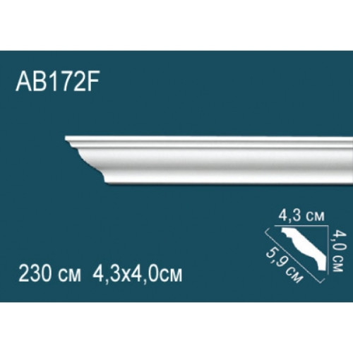 Гибкий плинтус для потолка AB172F Перфект Гибкий потолочный карниз предназначен для оформления стыка потолка и стены на радиусных стенах. Благодаря использованию особого материала его можно гнуть внутрь и наружу без риска поломки или появления трещин. Галтель подходит для установки на криволинейные поверхности и гипсокартонные декоративные конструкции сложной формы. Производитель предлагает изделия с различным дизайном. К каждой гибкой галтели предусмотрен жесткий аналог с таким же внешним видом. К данному потолочному плинтусу парой служит AB172. Это дает возможность создать в комнате единую композицию по всему периметру. Карниз можно клеить в любых жилых и технических помещениях. Материал хорошо переносит высокую влажность и температурные колебания, поэтому подходит для эксплуатации на кухнях, в ванных, на верандах и застекленных балконах. Компания ООО «ПЕРФЕКТ» являясь поставщиком гибких карнизов (плинтусов) АВ172 Flex из Китая, может предложить выгодные условия сотрудничества не только оптовым партнерам, но и розничным клиентам, желающих купить оригинальную продукцию. Характеристики товара: Материал - из полиуретана. Длина (см) - 240. Под покраску - Да. Коллекция - Перфект. Высота по стене (см) - 4. Ширина по потолку (см) - 4.3..