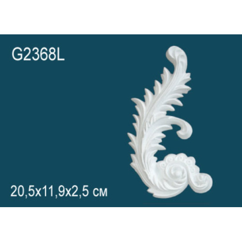 Декоративный орнамент из полиуретана G2368L Перфект Элемент орнамента Перфект — изысканные элементы декора, способные внести неповторимый шарм в интерьер любого помещения. Дизайн украшений, выполненный в барочном стиле, обладает изогнутыми линиями и сложным барельефом. Модели из полиуретана просты в установке. Они легко окрашиваются в любой цвет, поэтому идеально адаптируются даже к самому сложному дизайну помещения. Такие орнаменты часто используются для украшения стен, мебели или как часть более крупной потолочной композиции. Характеристики товара: Материал - из полиуретана. Высота - 11.9. ширина - 20.5. Толщина (см) - 2.5. Под покраску - Да. Коллекция - Перфект..