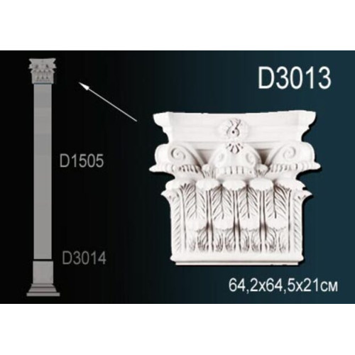 Обрамление дверных проёмов (Капитель) D3013 Перфект Характеристики товара: Материал - из полиуретана. Высота - 64.5. ширина - 64.2. Толщина (см) - 21. Под покраску - Да. Коллекция - Перфект..